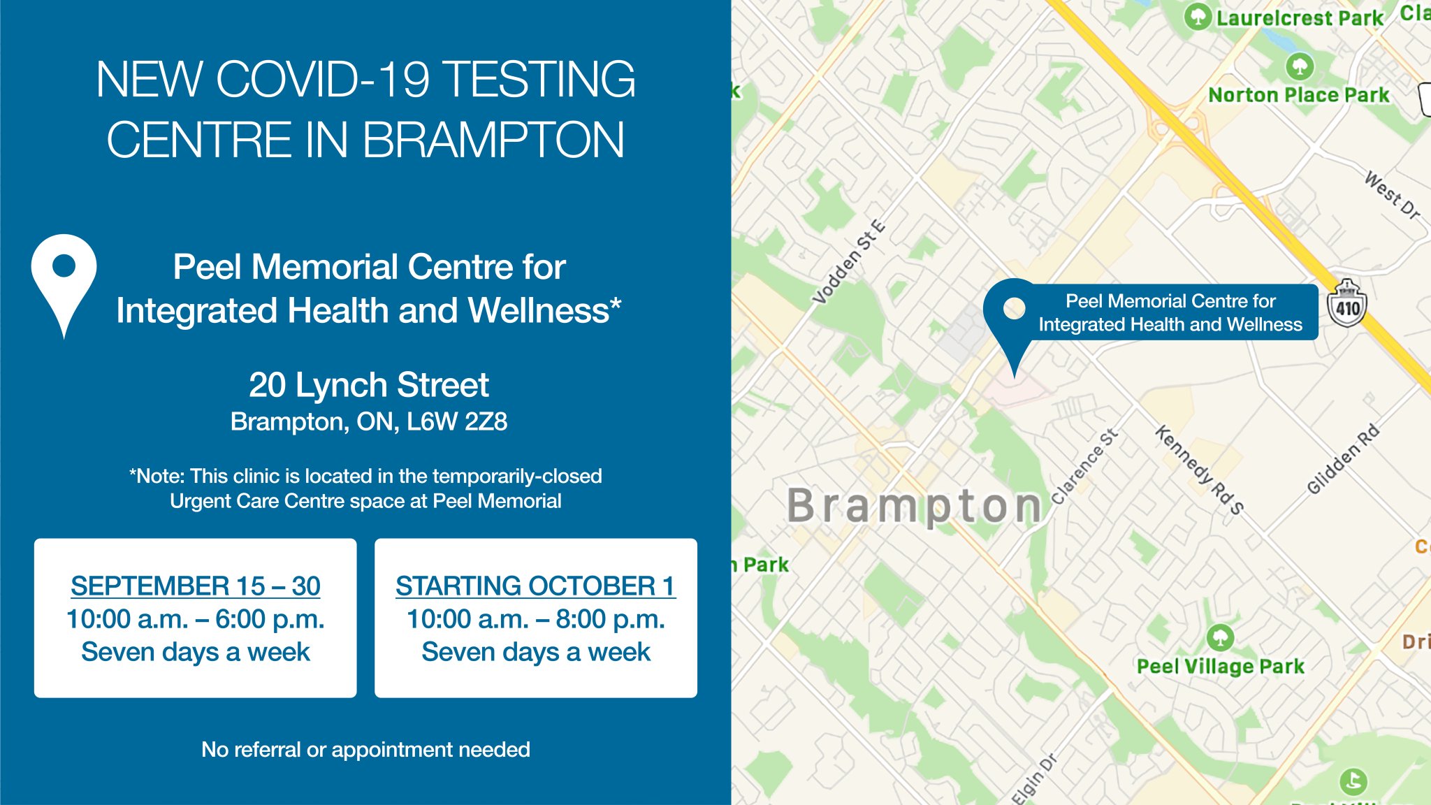 Doug Ford On Twitter Yesterday Oslerhealth Opened A New Covid 19 Testing Centre In Brampton Peel Memorial Centre Will Be Open Everyday At 10am No Referrals Or Appointments Are Needed If You Have